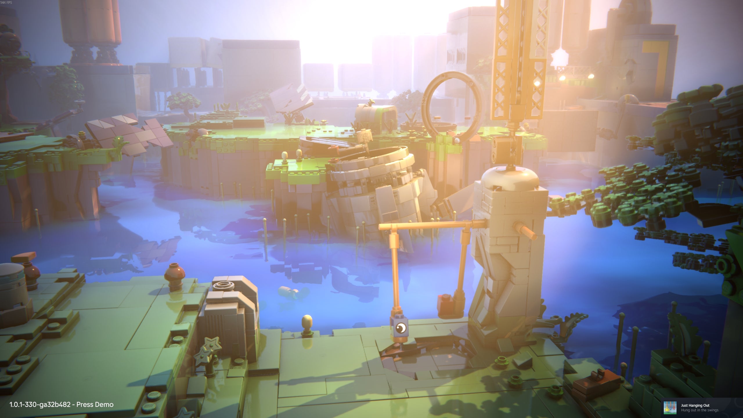 Mark: I’ll be interested to see how the general atmosphere holds up in that light too. While Voyagers’ simple Lego islands are draped in ruined tech, pipes, and trees, one of the drawbacks of being a Lego game is that environments do just end up looking like Lego. That’s not a big hangup by any stretch of the imagination, but it does mean Voyagers doesn’t look as visually unique or striking as other chill puzzlers, like Monument Valley. That might actually aid in its appeal to kids, though. I liked the understated and dreamy vibes of the soundtrack. There were a few moments in the demo, such as when we hopped on the swings or seesaw, when it piped up noticeably again after neatly blending into the background during the platforming. That’s the sign of a well-balanced ambiance.