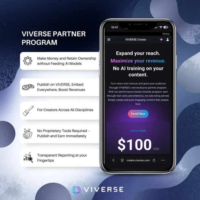 HTC’s VIVERSE has launched the VIVERSE Partner Program, a performance-based rewards initiative for creators to monetize immersive content through audience engagement.